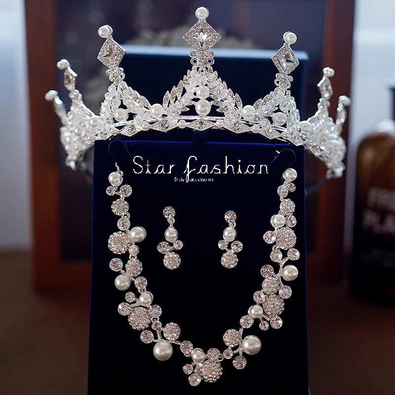 Perak Pernikahan Bridal Prom Kristal Berlian Imitasi Anting Anting Kalung Gelang Mahkota Tiara Perhiasan Set Untuk Pengantin Pernikahan Perhiasan Set Aliexpress