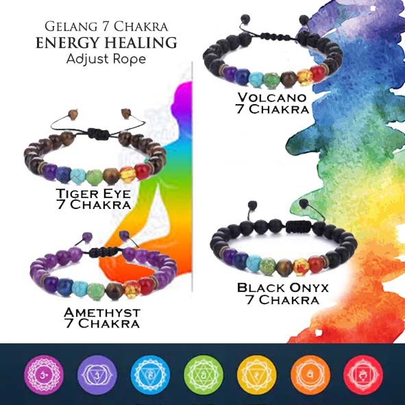 Gelang healing 7 chakra adalah aksesoris yang dirancang untuk menyeimbangkan tujuh cakra 7 aura pusat energi yang digunakan selama berabad-abad oleh budaya India dan Timur. Gelang ini terdiri dari tujuh macam batu dalam 7 warna yg masing-masing mewakili tiap cakra yaitu cakra mahkota cakra. Tubuh menjadi lebih segar pikiran tenang dan tidak mudah pusing kekebalan tubuh bertambah dan meningkatkan kelancaran kognitif.