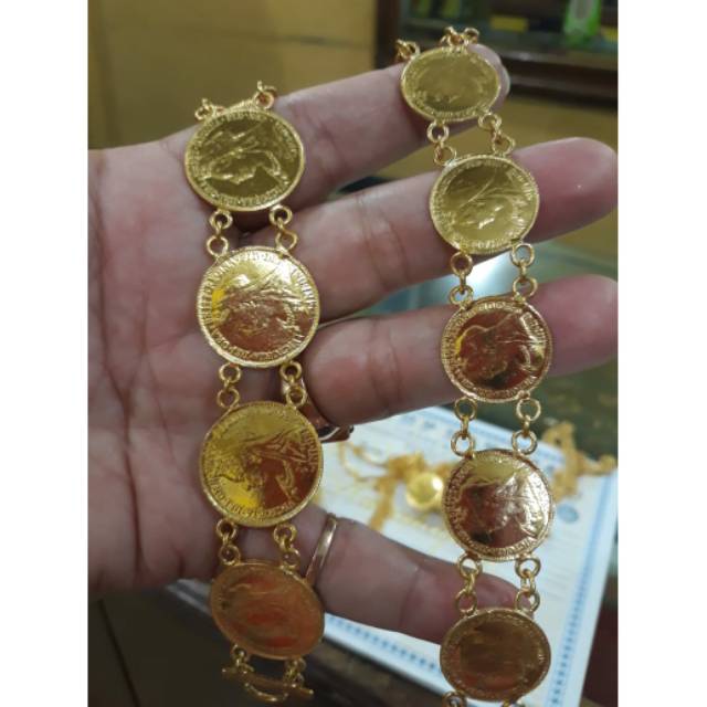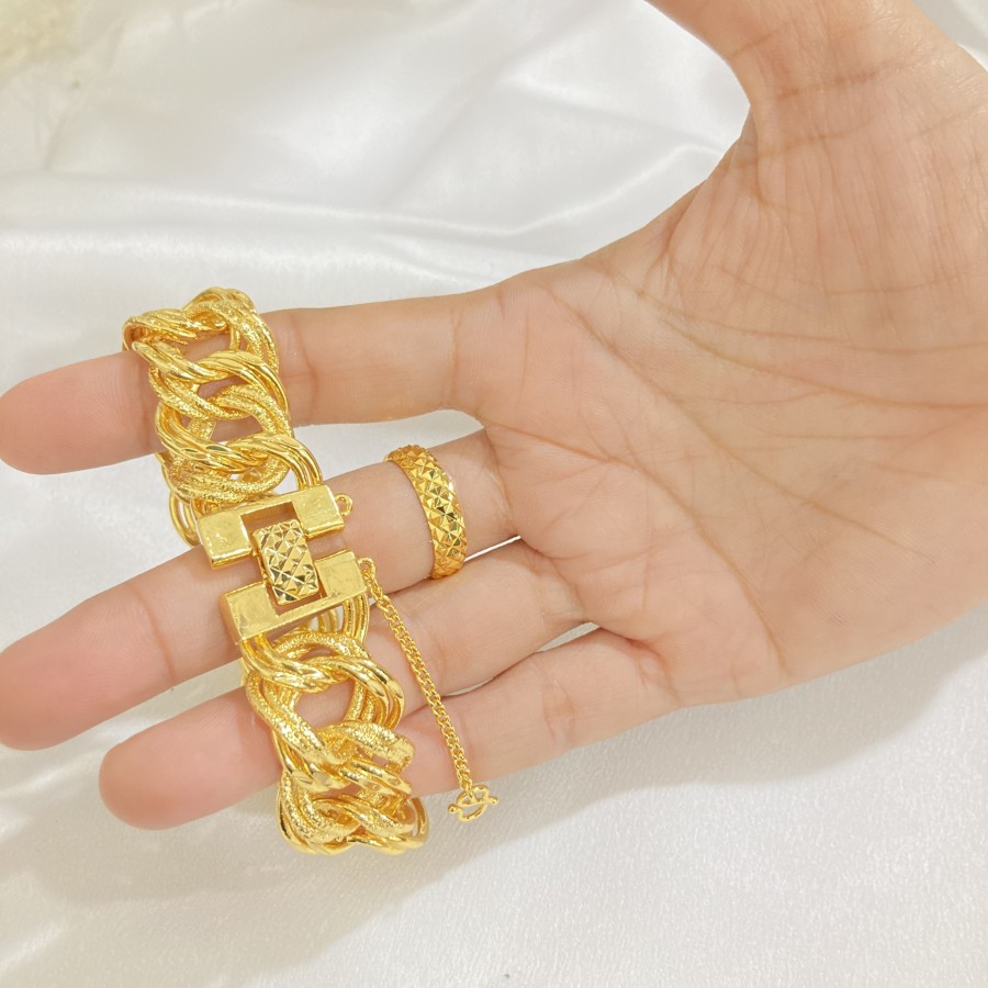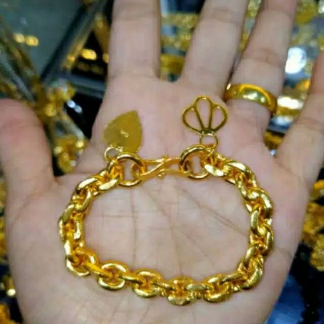 Gelang emas 50 gram 24 karat Pengiriman cepat Pembayaran 100 aman. Gelang lapis emas 24 karat Bahan tembaga disepuh mas 24 karat sehingga warna persis mas asli pudar bisa disepuh ulang Berat 6 gram-50 gram Harga mulai dri 80000-150000 Info pemesanan wa 085600839262.